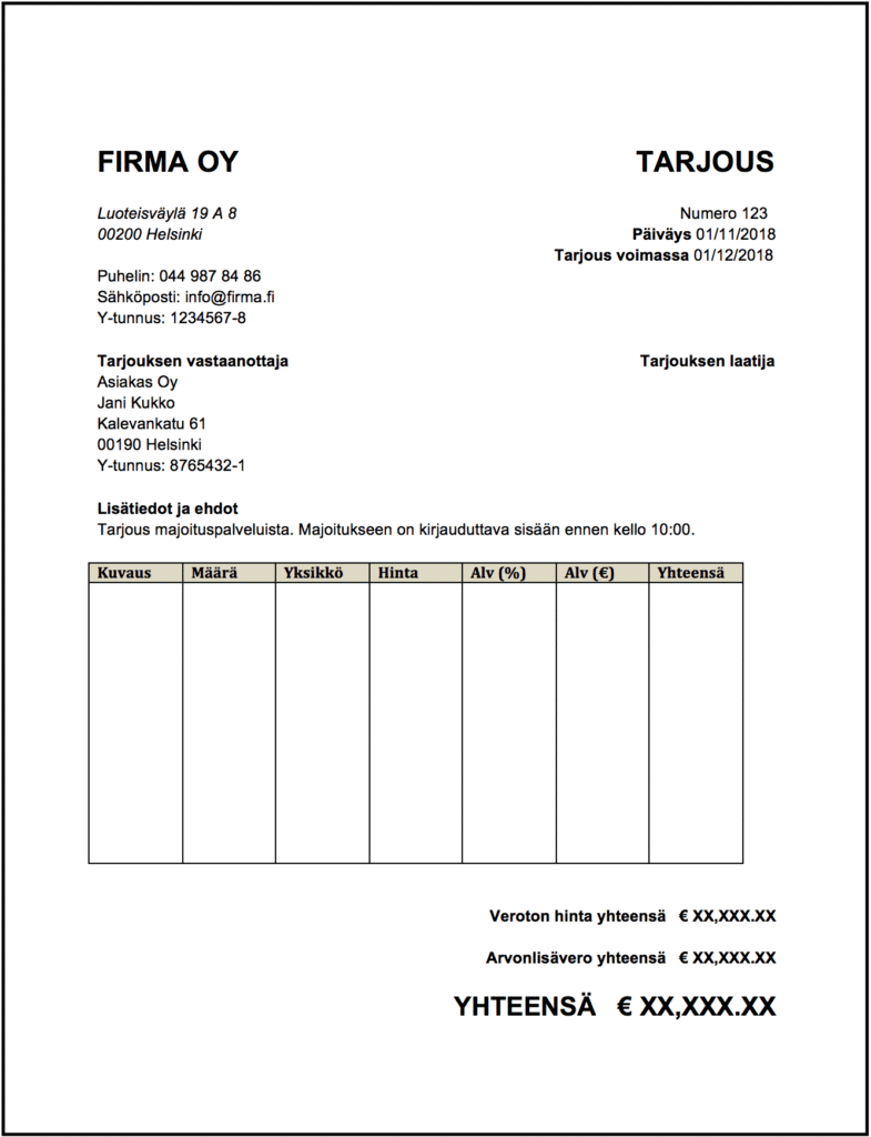 Lataa ilmainen vakuutus tarjouspyyntö pohja ja opi, miten vastata tarjouspyyntöön oikein. Tämä malli auttaa sinua tekemään tarkkoja ja selkeitä tarjouksia helposti.