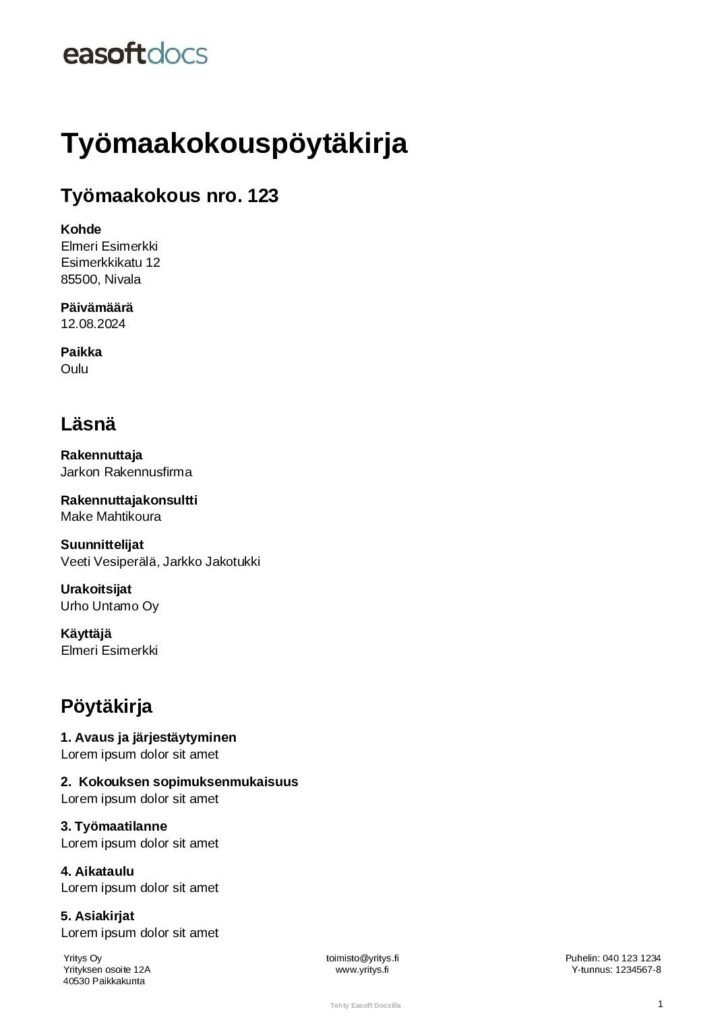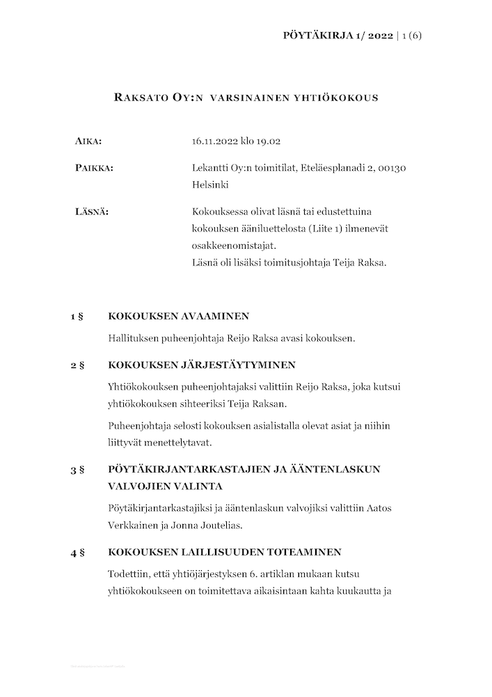 Osakeyhtiön yhtiökokous pöytäkirja pohja englanniksi ilmaiseksi pdf-muodossa
