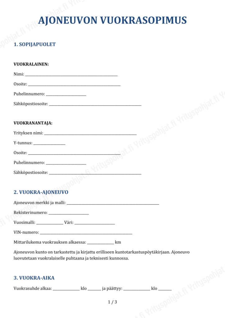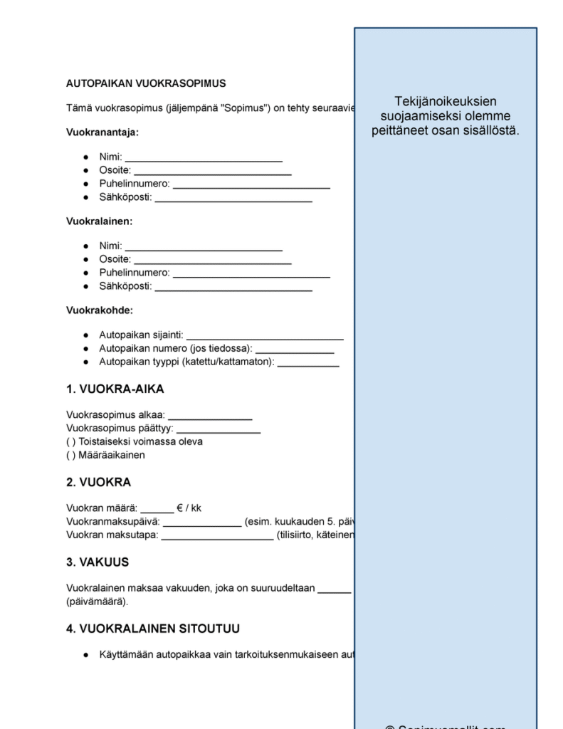 Autopaikan vuokrasopimus pohja ilmaiseksi pdf-muodossa