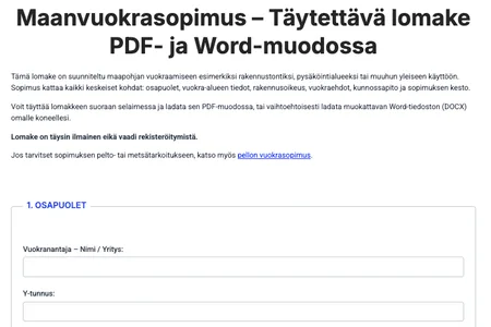 Lataa ilmainen tontin vuokrasopimus pohja verkkosivuiltamme ja selvitä, kuka maksaa tontin vuokran. Helppo ja kätevä tapa hallita vuokrasopimuksesi.